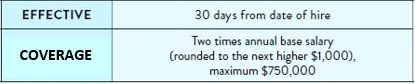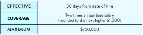 Business Travel Accident Insurance (payable if traveling on company business) – provided at no cost